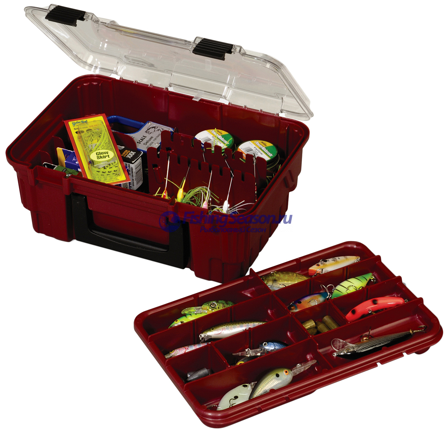 Ящик двухсекционный Plano 1348 предназначен для длительного хранения и транспортировки рыболовных снастей. Верхнее съемное отделение (поддон) для хранения приманок (наживки) расположено под прозрачной крышкой. Количество отделений 6. При желании с помощью входящих в комплект сменных перегородок количество отделений можно довести до 16-ти. Большое нижнее отделение для хранения спиннербейтов. Количество отделений 5. Габаритные размеры 29,2 см (11.5") [L] Х 21,0 см (8.25") [W] Х 12,7 см (5") [H]. Вес 720 г. Цвет - красный. Изделие изготовлено из ударопрочного пластика. Пластик устойчив к воздействию силикона (силиконовые приманки).