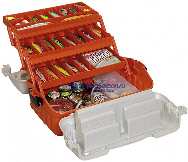 Ящик Plano 7603-00 Новинка. Выполнен из высокопрочного легкого и безопасного пластического материала, с фурнитурой из нержавеющей латуни и предназначен для длительного хранения и транспортировки рыболовных снастей (в том числе и для силиконовых приманок). - отделение в крышке выполнено по прогрессивному принципу « вехнего доступа» к приманкам - три выдвижных поддона - вместительное нижнее отделение - цвет медный/ серебряный - габариты L 43.8 x W 26,7 x H 19,7 см